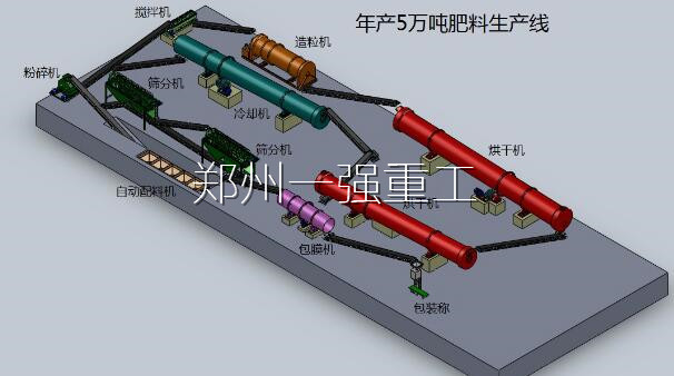 有机肥生产线包括发酵设备、造粒设备、粉碎设备、搅拌设备、筛分设备、冷却设备、烘干设备、包膜设备、自动包装设备等工艺流程。